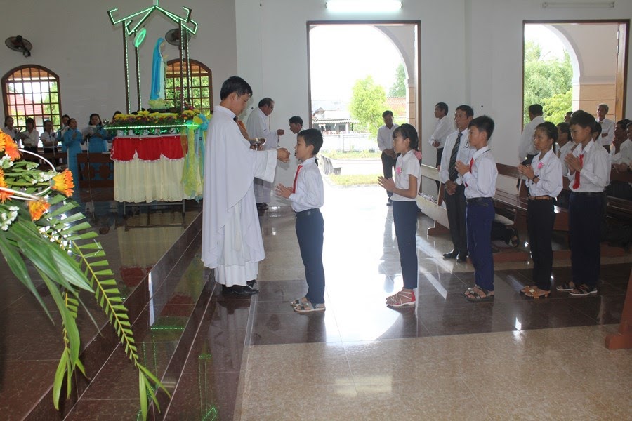 Thánh lễ hôm nay diễn ra hết sức trọng thể vì còn là dịp 17 em thiếu nhi giáo xứ Đồng Tre được xưng tội rước lễ lần đầu. Thánh lễ ghi dấu mốc quan trọng trong cuộc đời sống đạo của các em. Thánh lễ còn có đại diện HĐGX giáo xứ Sông Cầu, Đa Lộc, Trà Kê cùng hiệp thông chia vui với giáo xứ Đồng Tre. Ngoài ra đây cũng là dịp để một số giáo dân gần xa hành hương hưởng ơn toàn xá.