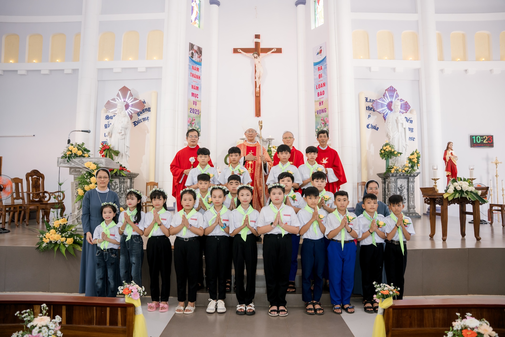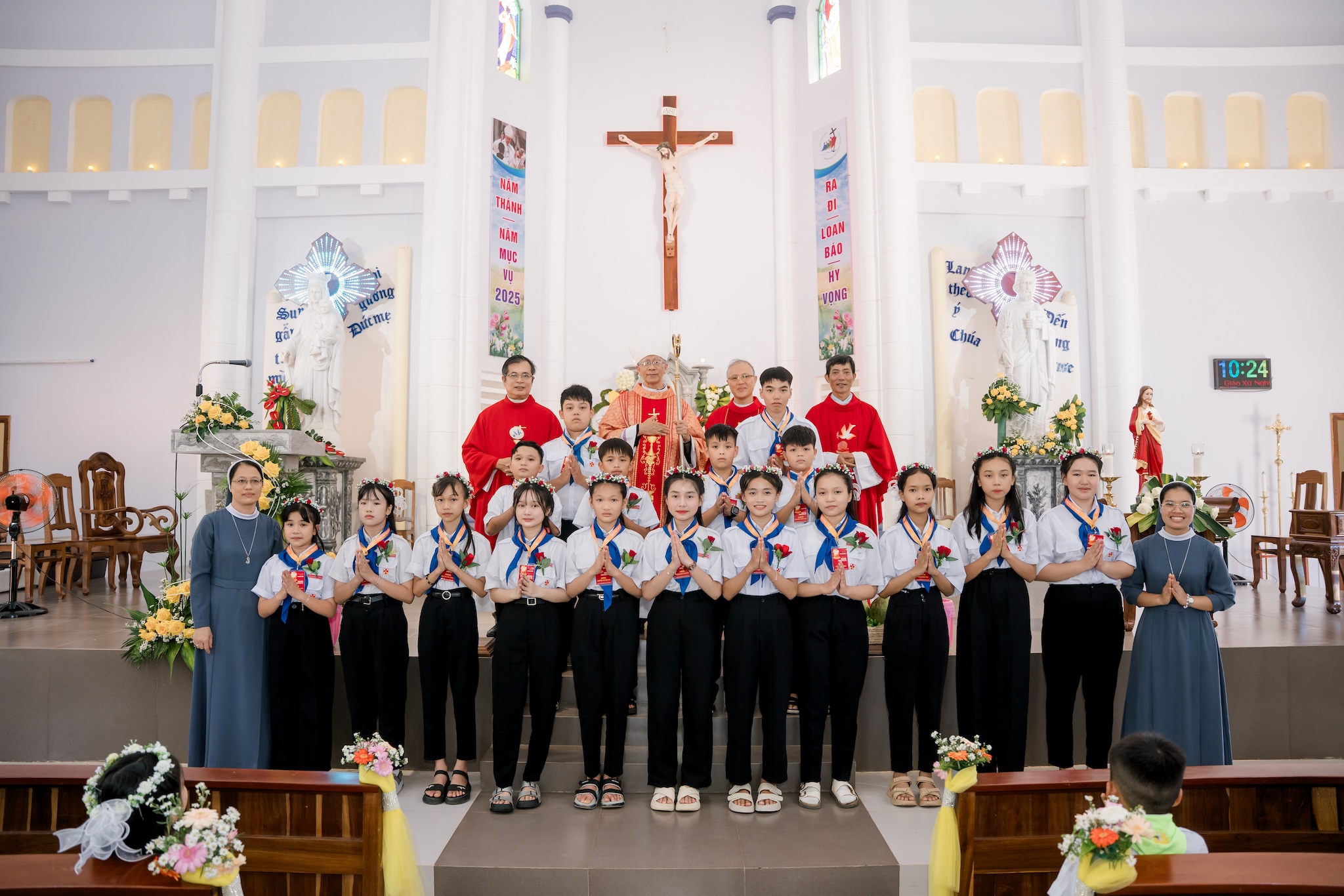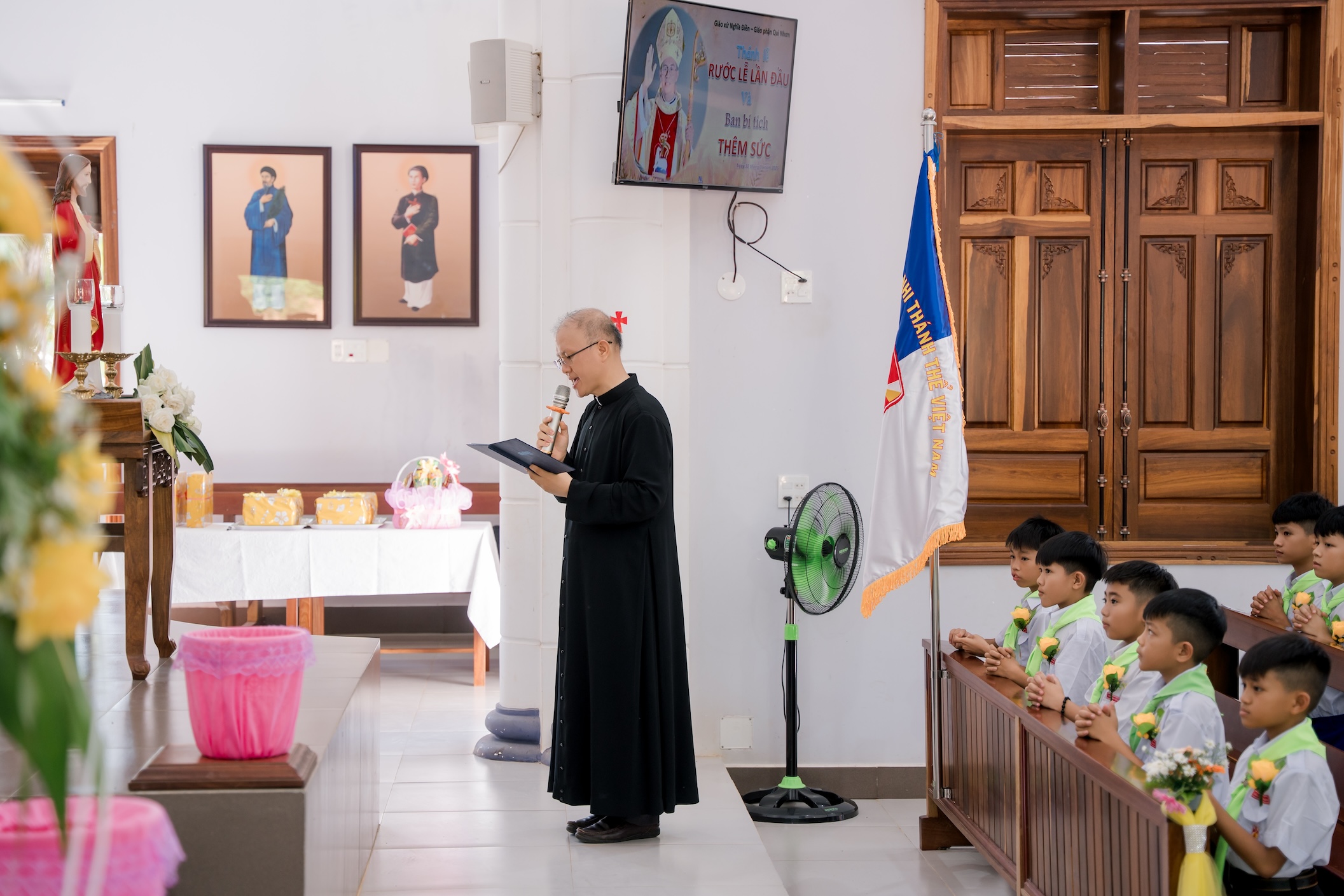 – Sau thời gian các em theo học các lớp giáo lý Thêm Sức và Rước lễ lần đầu, với sự đồng hành của cha quản xứ, quý giáo lý viên và sự nâng đỡ từ gia đình, hôm nay trong Thánh lễ có 17 em thiếu nhi đã lãnh nhận Bí tích Thêm Sức và 21 em được Rước lễ lần đầu.