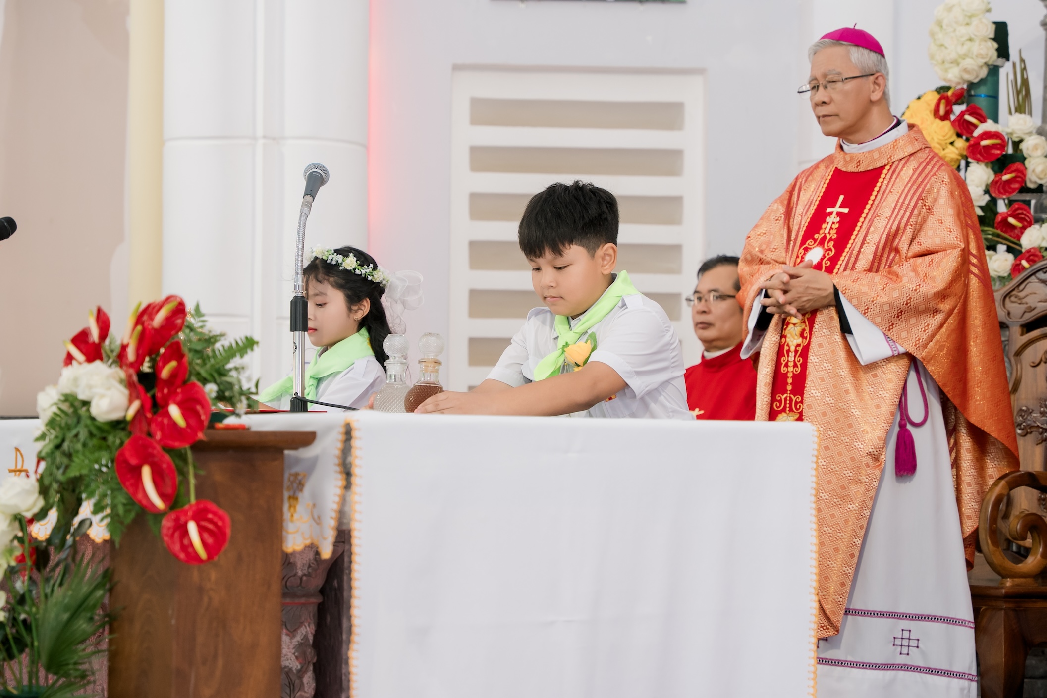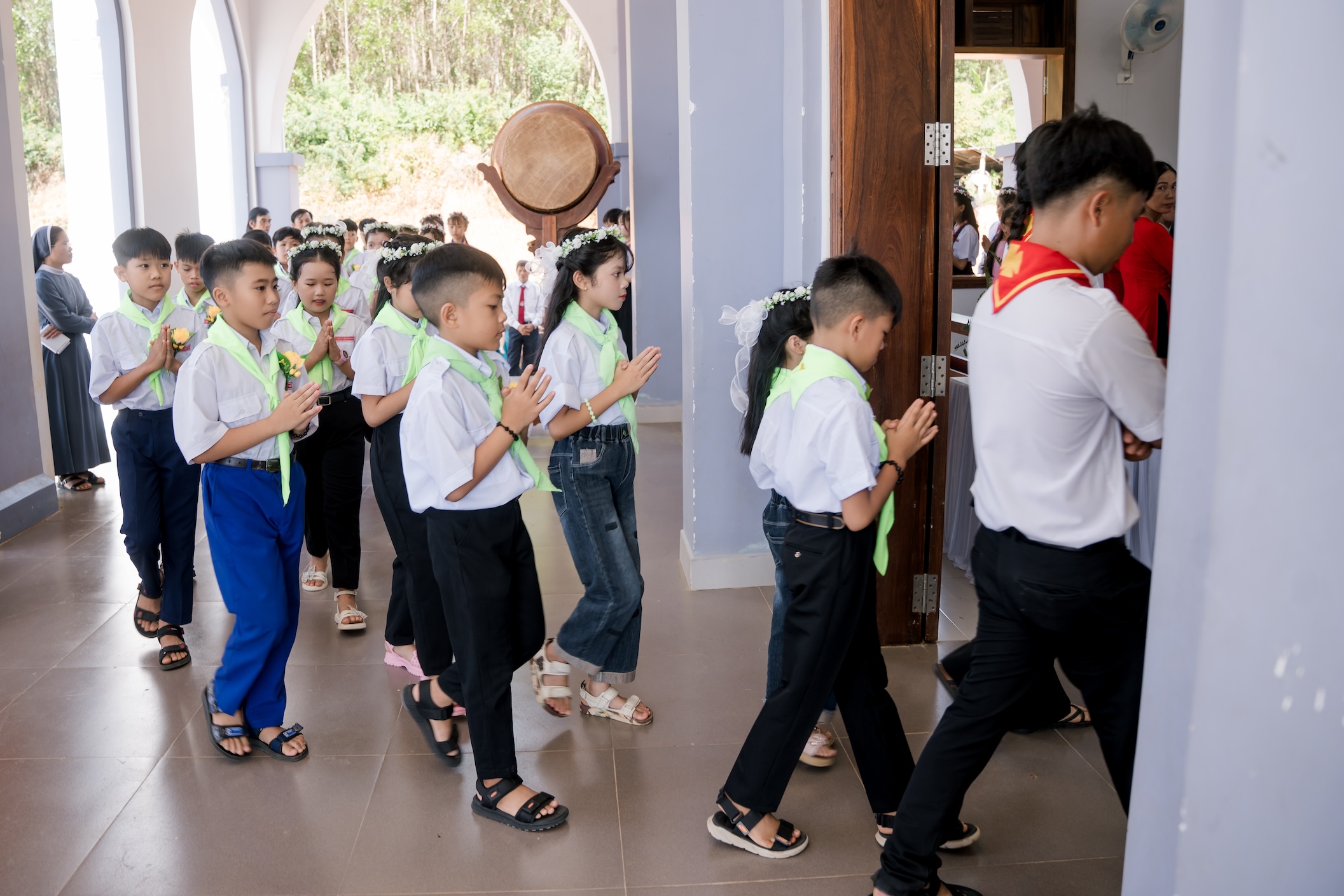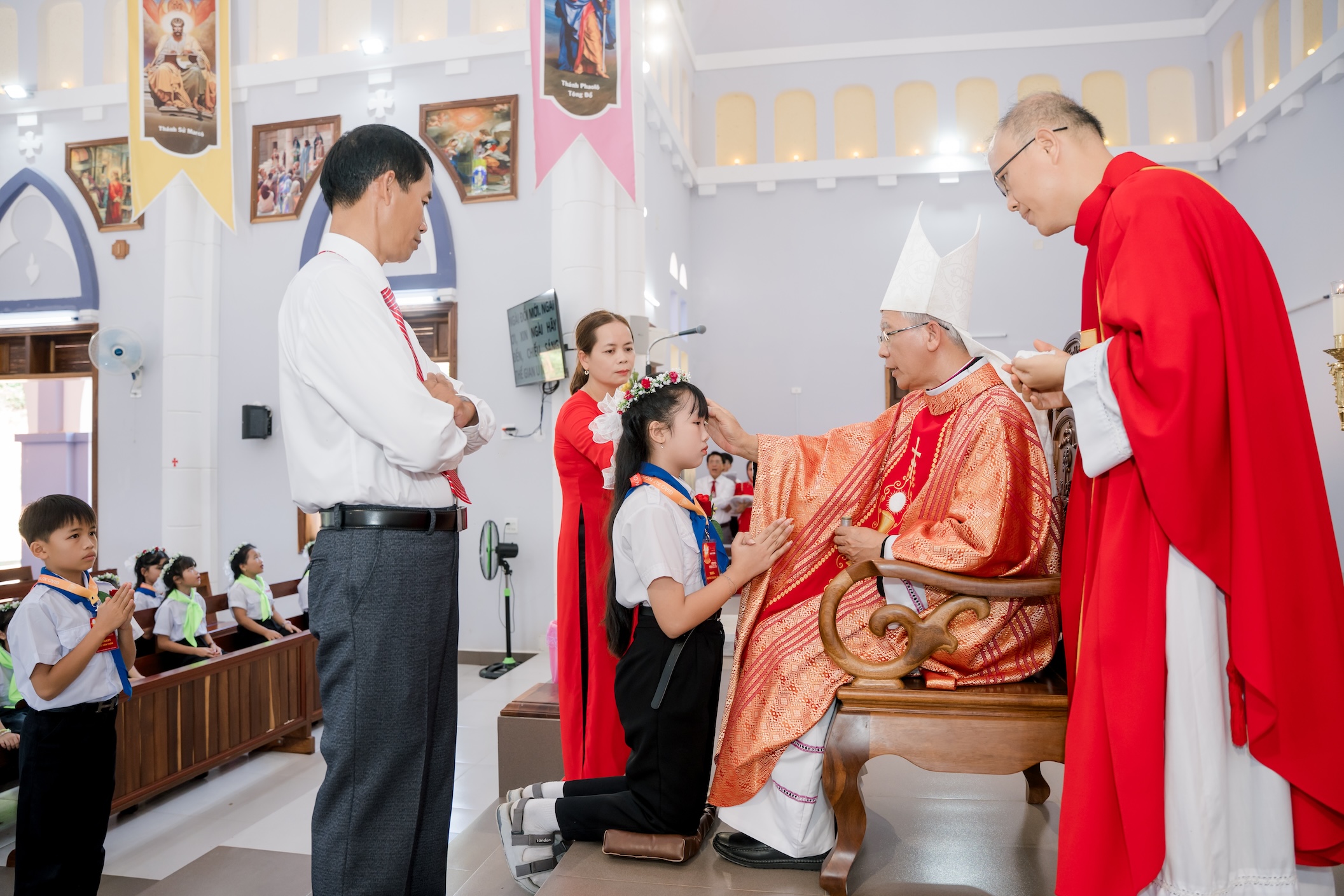 – Sau thời gian các em theo học các lớp giáo lý Thêm Sức và Rước lễ lần đầu, với sự đồng hành của cha quản xứ, quý giáo lý viên và sự nâng đỡ từ gia đình, hôm nay trong Thánh lễ có 17 em thiếu nhi đã lãnh nhận Bí tích Thêm Sức và 21 em được Rước lễ lần đầu.
