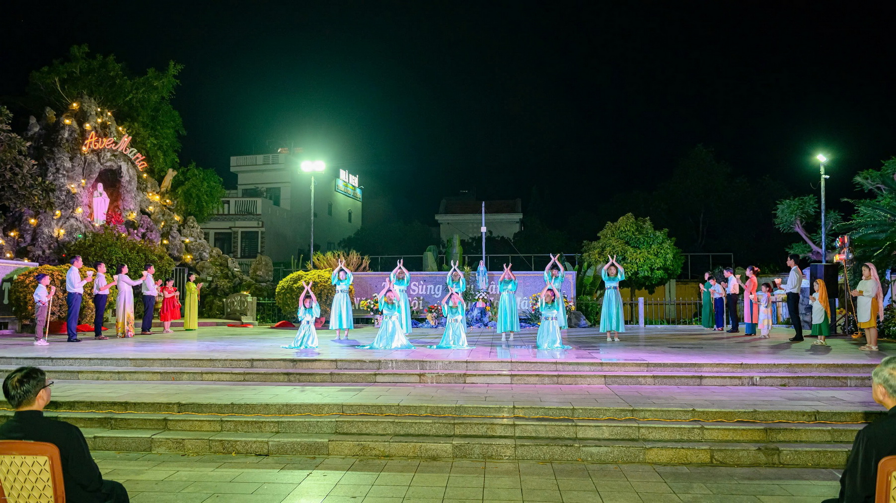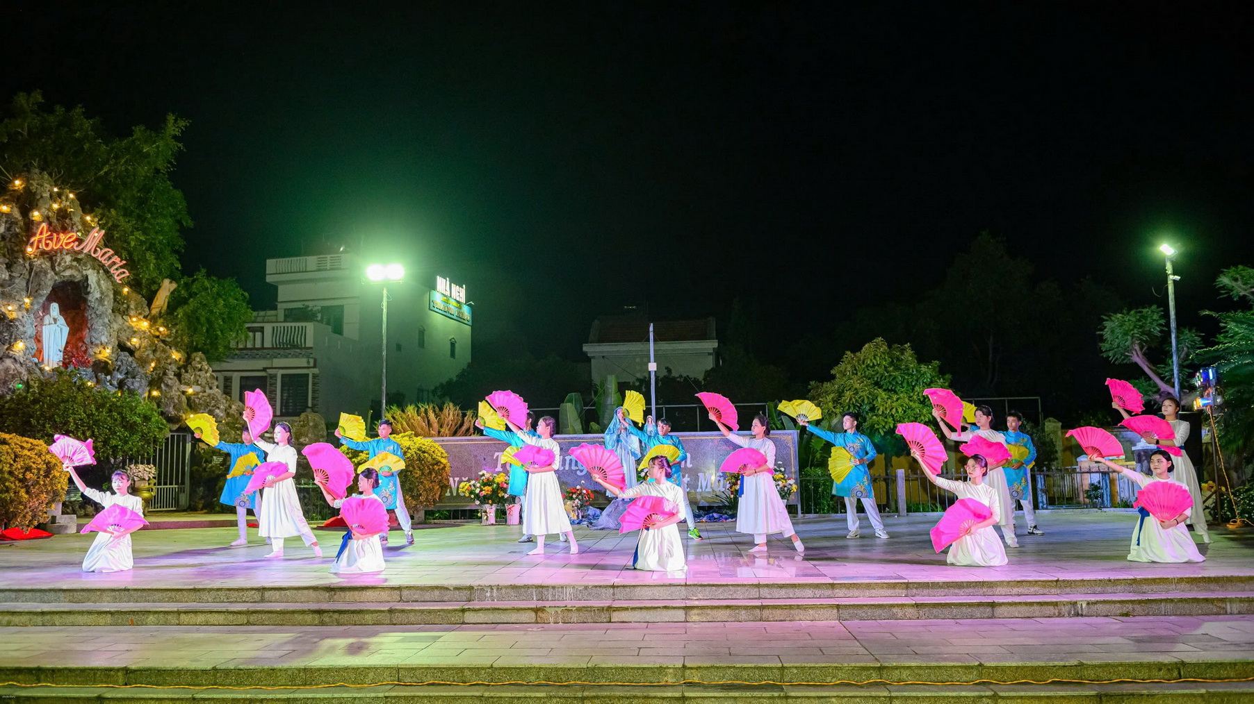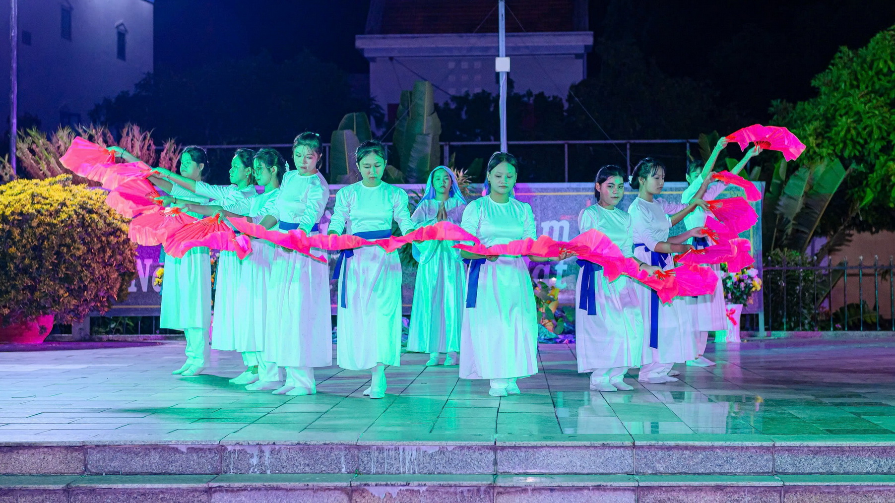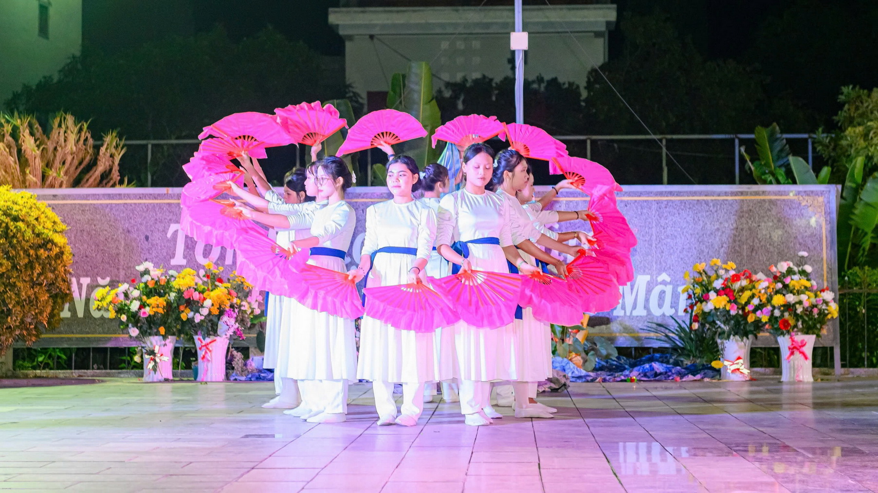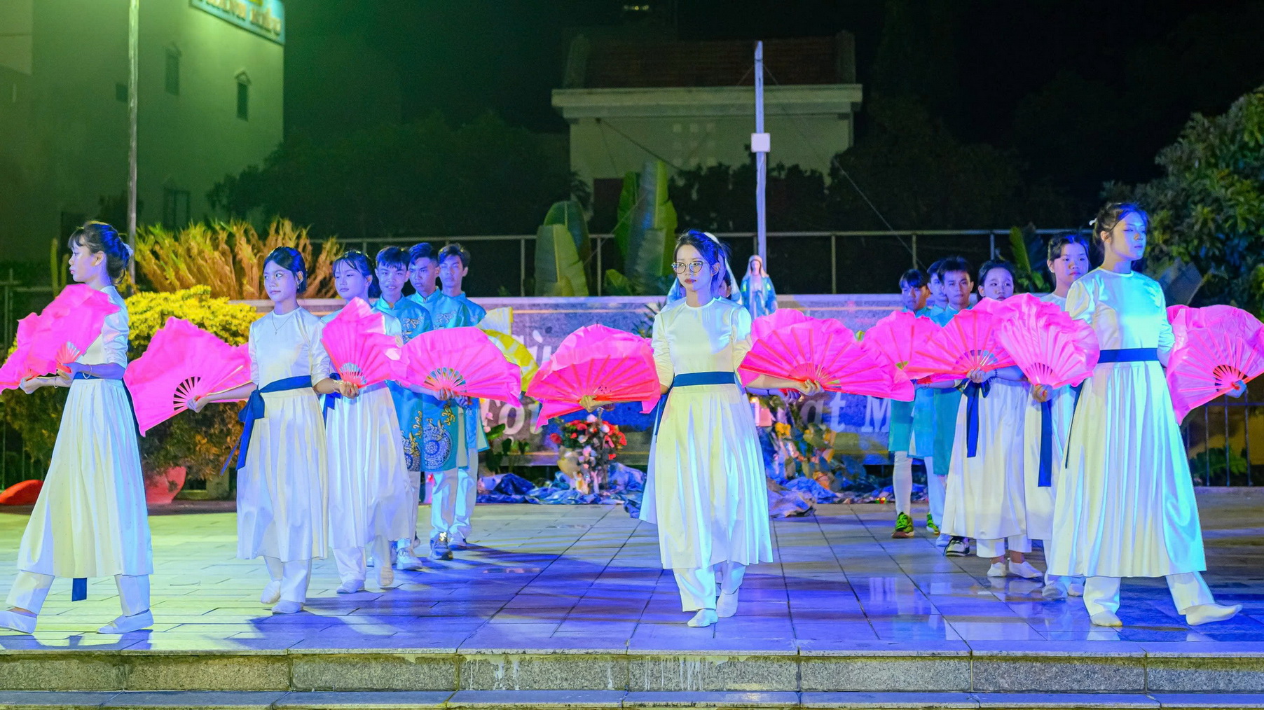 Sau lời khai mạc, đội múa dâng hoa thể hiện những vũ khúc tôn vinh Mẹ Maria: Chuỗi Ngọc Mân Côi, Tấu lạy Bà, Năm xưa trên Cây Sồi. Sau các vũ khúc, mỗi người cầm trên tay đóa hoa hồng cùng tiến dâng lên Mẹ trong tâm tình con thảo.
