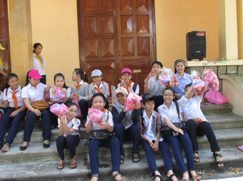 Và cũng trong chiều nay, Ban giáo lý đã mang quà đến với các em thiếu nhi thuộc giáo họ Phú Lâm, một giáo họ mới gia nhập vào giáo xứ Tuy Hòa. Vì trời mưa to nên chỉ khoảng bốn mươi em trên tổng số sáu mươi thiếu nhi có mặt sau thánh lễ chiều. Lần đầu tiên các em được sinh hoạt với danh nghĩa là giáo dân Tuy Hòa nên còn e ngại, nhút nhát, lạ lẫm…