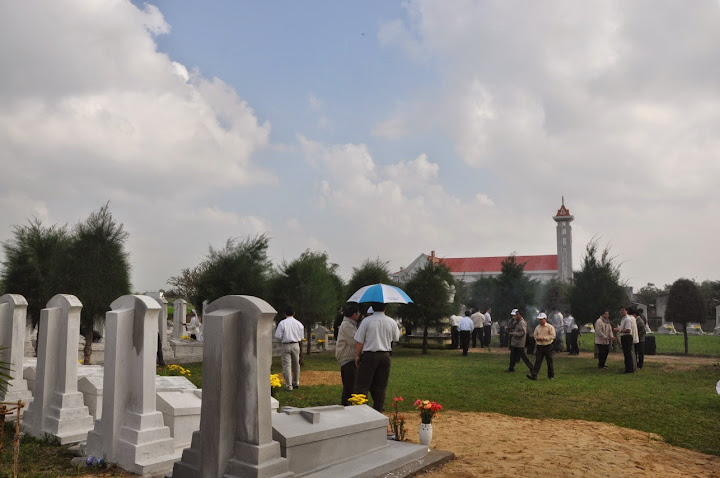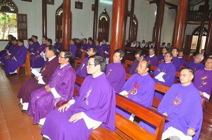 Trước khi cử hành thánh lễ, mọi người đã làm một cuộc hành hương ngắn ngủi đi về nghĩa trang các linh mục Làng Sông để thăm viếng, cầu nguyện và thắp hương trước mộ của các giám mục linh mục tiền nhân. Sau nghi thức tưởng nhớ, mọi người về lại Chủng viện Làng Sông để bắt đầu thánh lễ giỗ vào lúc 10 giờ. Thánh lễ do Đức cha Matthêô chủ tế, cùng dâng thánh lễ có Đức cha Phêrô, khoảng 70 linh mục với sự tham dự đông đảo của nữ tu các hội dòng và chủng sinh.